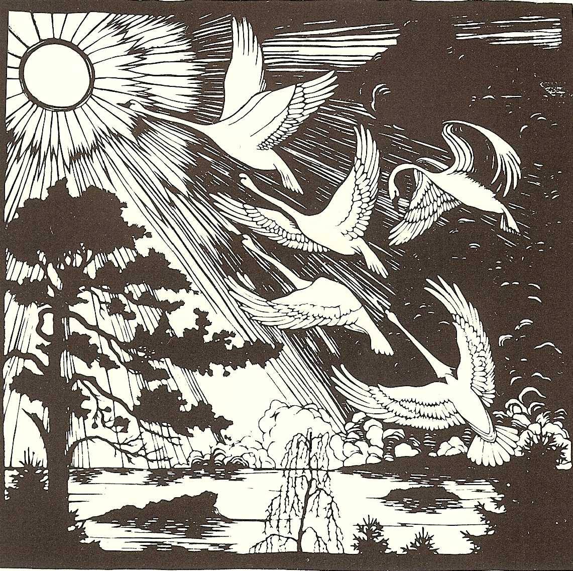 - the design is cut with scissors from black paper and pasted onto the white background